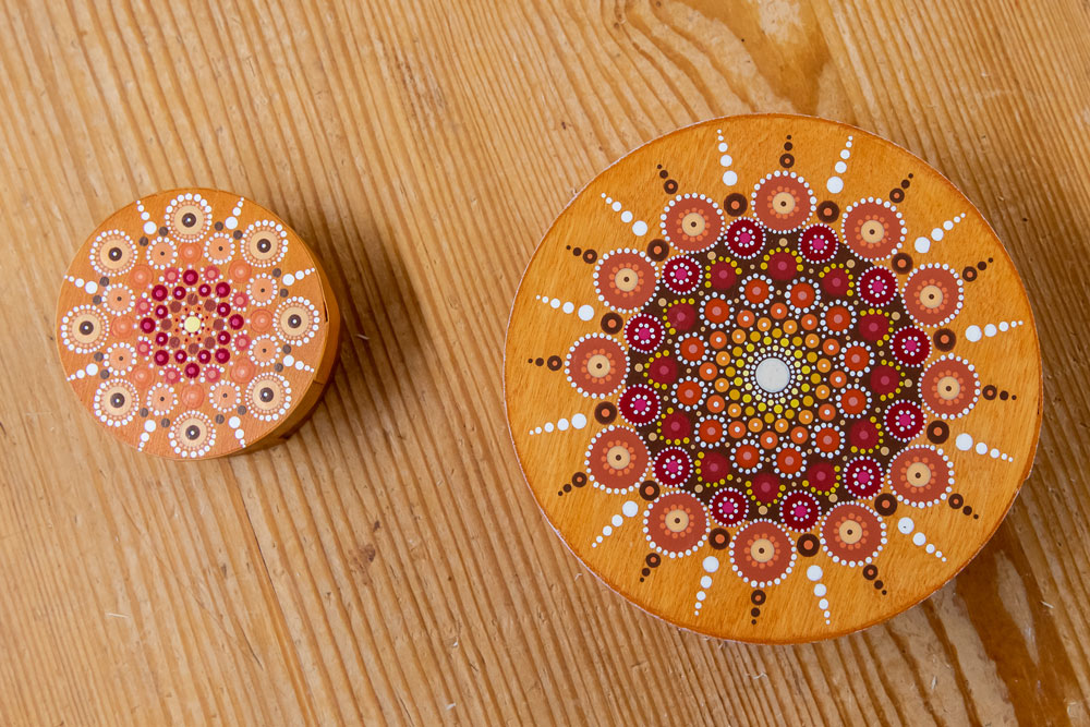 Du lernst das Bemalen mit Punktholz und Pinsel sowie Grundlagen der Farblehre.