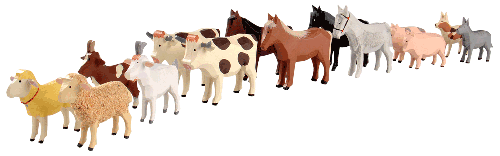 Du beschnitzt verschiedene Reifentiere mit dem Schnitzmesser. Darunter sind Pferd, Elefant, Schaf und viele weitere.